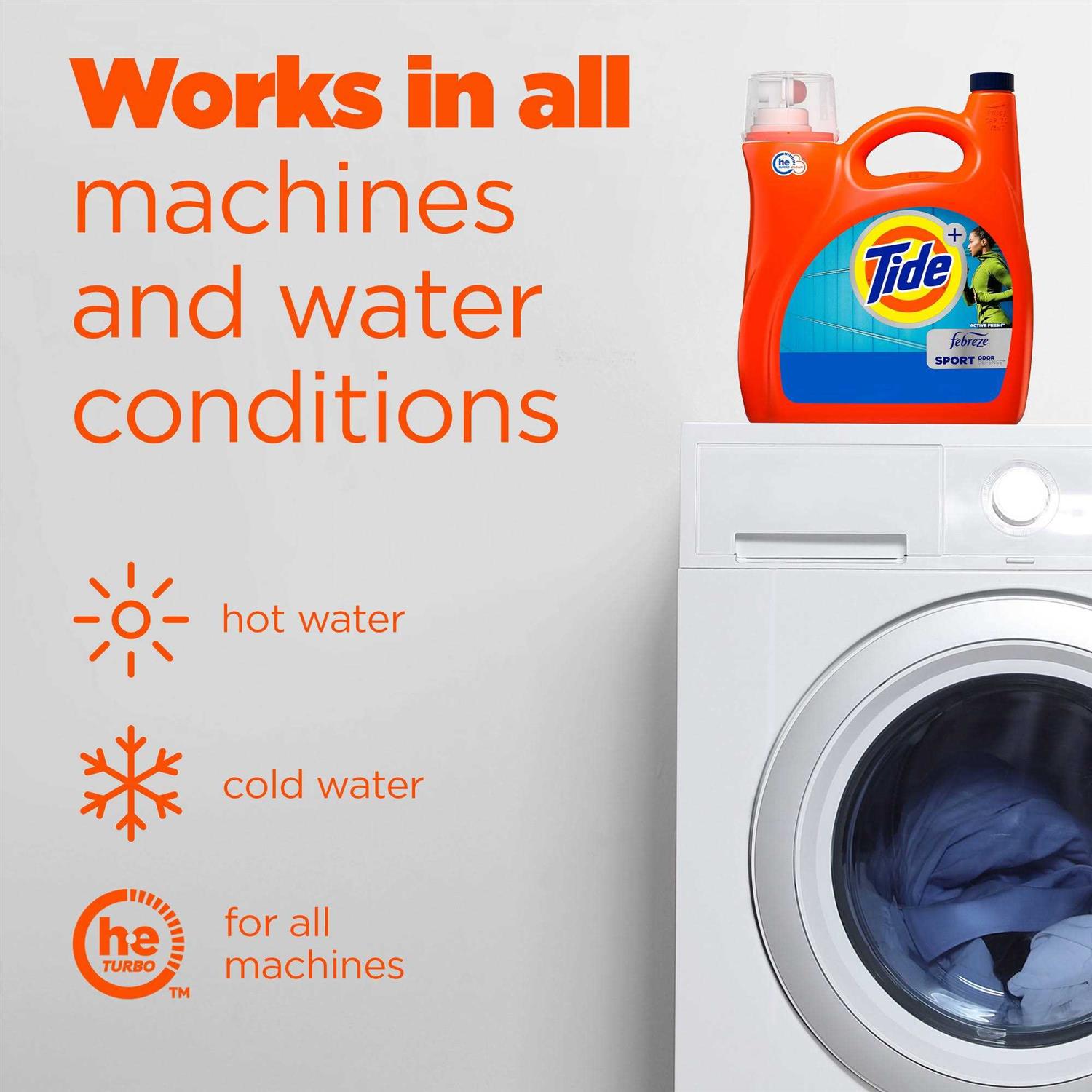 Tide Plus Febreze Sport Odor Defense HE Turbo Clean liquid laundry detergent offers excellent clean and odor removal, plus the Febreze freshness that helps your workout and athletic gear stay fresh up to 3x longer*. It effectively targets tough stains and removes even week-old sweat odors. Also, the Tide’s formula contains special scent-renewal technology that releases freshness as you move, helping keep your fabrics smelling great all day. Enjoy a wonderful scent experience that lasts and benefit from even more odor-fighting power. *vs. Tide Original