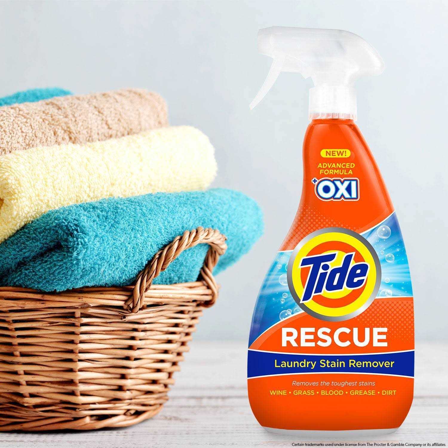 Tide rescue laundry stain remover works to remove the toughest stains from all kinds of fabrics and clothes as well as carpet. Its advanced formula gets out wine, grass, blood, grease dirt and more.