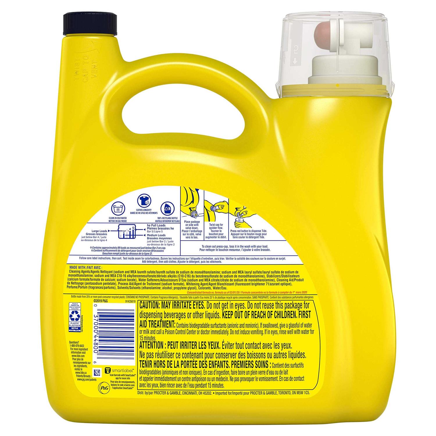 Tide Simply Clean and Fresh liquid laundry detergent has 2X the baking soda power to target tough odors deep in the fibers of your clothes. It is now more concentrated to provide more stain removal and freshness and less water. From Americas #1 detergent, to cover your many laundry needs. Also try our small but powerful Tide PODS laundry pacs. Measure your loads with cap. For medium loads, fill to bar 1. For large loads, fill to bar 3. For HE full loads, fill to bar 5. Add clothes, pour into dispenser, start washer. verse previous formula based on sales.
