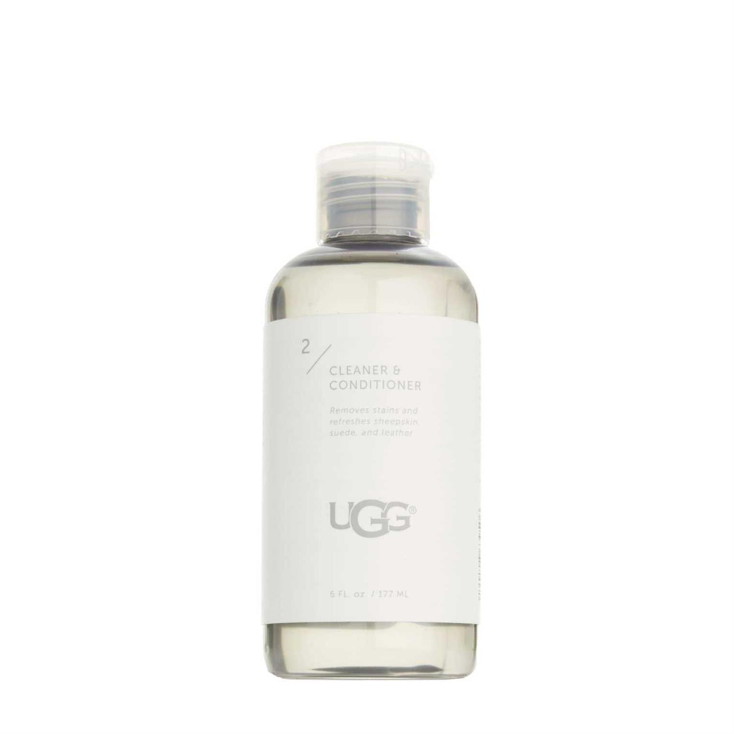 UGG specially created a Sheepskin Cleaner Conditioner from natural coconut and jojoba oils to clean, condition, and rejuvenate your favorite UGG boots and slippers. Removes stains and protects. Non-toxic, biodegradable, and free of animal products. 6 oz. Imported.
