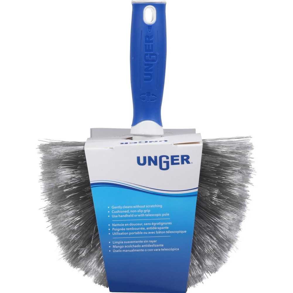 Unger’s cobweb and corner duster dusts corners, ceilings and vents without scratching. The unique dome-shape of the flagged bristles easily trap spiderwebs in moldings and corners. It features a non-slip grip and flat sides for easy storage. Use it either as a handheld tool or attached to a telescopic pole. Part of the Unger’s locking system.