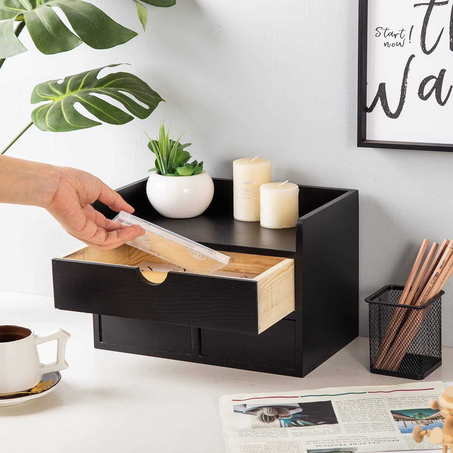 Be the first to review “VERGOODR Rustic Distressed white 3-Tier Wood Desk Organizer with 3 Drawers Mini Desk Storage Shelf For Desk”
