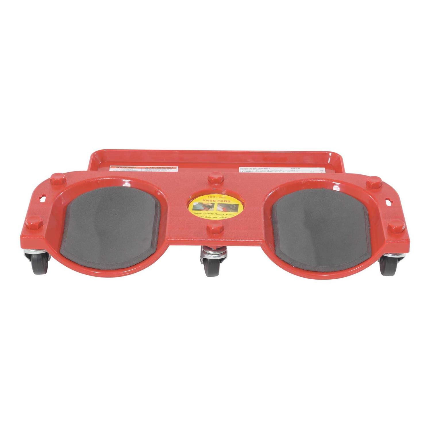 KNEE-D Vestil’s Rolling Knee Dolly is ideal for people working on their knees with red molded plastic foam cushioned knee cups and handy tool tray. This dolly has a deck size of 20-1/4 inches wide x 10 inches long x 3-3/4 inches high with a 350 pound uniform static capacity which rolls on six 6 2 inch casters. Great for automotive garages maintenance departments and furniture warehouses.