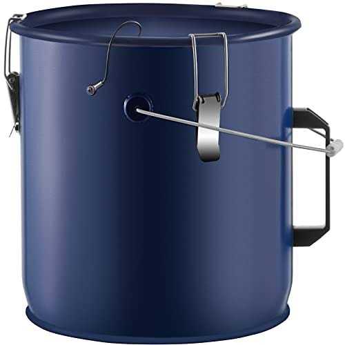 6 Gal Capacity With Filter Bag: Our fryer grease bucket features a large capacity within its compact size. Measuring 11.2″ (28.5 cm) in diameter and 11.8″ (30 cm) in height, it can hold 6 gallons of oil, reducing the frequency of emptying the oil buckets. With its flat lid, it can be stacked up to save your space. Moreover, a filter bag is also offered, with which you can easily filter the impurities, suspended solids, and particulate matter in the oil. Premium Steel Material: Made of heavy-duty steel, about 0.02″ (0.6 mm) in thickness, our oil disposal caddy is not easy to deform and built to last. Both the outside and inside are equipped with coatings. The rust & corrode-proof blue exterior coating enables this fryer oil caddy to stand up to wears and tears. And the interior is covered with a food-grade coating, hygienic & withstanding high temperatures, with which you can store the oil in it at ease. Locks For Better Sealing: For a better sealing effect, this fryer oil bucket integrates three pieces of quick-lock clips on its top. You can fasten the lid tightly just by pressing down these lock catches. Besides, the cushion ring beneath the cover will also enhance the sealing performance. With this double assurance design, the fryer oil transport container will not spill when it is full of oil, which significantly facilitates the storage and transportation of the fryer oil. Double Handles & Connected Lid: Our deep fryer grease bucket is designed with two user-friendly handles. The top handle adopts stainless steel material and a non-skid treatment. It calls attention to easy lifting and hard to crack or break. The firmly attached side handle is convenient for moving and pouring the oils. Furthermore, the lid and the bucket are connected through a piece of hanging rope. The cover can be placed leaning against the barrel, saving your space. Applicable In Extensive Places: Constructed of durable material and designed in a compact size, this grease bucket for fryer is suitable for various places, including but not limited to restaurant kitchens, fast-food chains, hotpot restaurants, bars & grills, cafeterias, and public canteens, etc.
