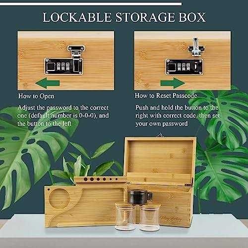 100% NATURAL BAMBOO BOX – Carefully selected renewable bamboo grown for 3-6 years, which is naturally avoids stains and odors, meticulously polished and crafted. LARGE STORAGE BOX – Enough storage space to store your personal essentials in, each 10.6″L x 7.1″W x 5.5″H box bundle comes with a removable tray, two glass storage jars, a titanium spices masher, a cleaning brush and a silicone tube. LOCKABLE ORGANIZER – The best things are kept secret, the built-in combination lock will safely and securely store your valuables, and the strong hinges ensure easy opening/closing. Note: The default combination is 0-0-0 and you’re free to set your own password. SLIDING TRAY SET – Movable tray slides smoothly for ease of use and to prevent spillage, it can be removed & used on its own without bringing the entire box. Additionally, there is a special slot in the tray to accommodate your cell phone or tablet. ULTIMATE SOCIAL &GIFT BOX – No matter gift this all-inclusive box set to a friend or bust it out at a fun get-together, it’s a good solution to preserve the flavor and nutrients of their favorites while keeping everything neat and organized.