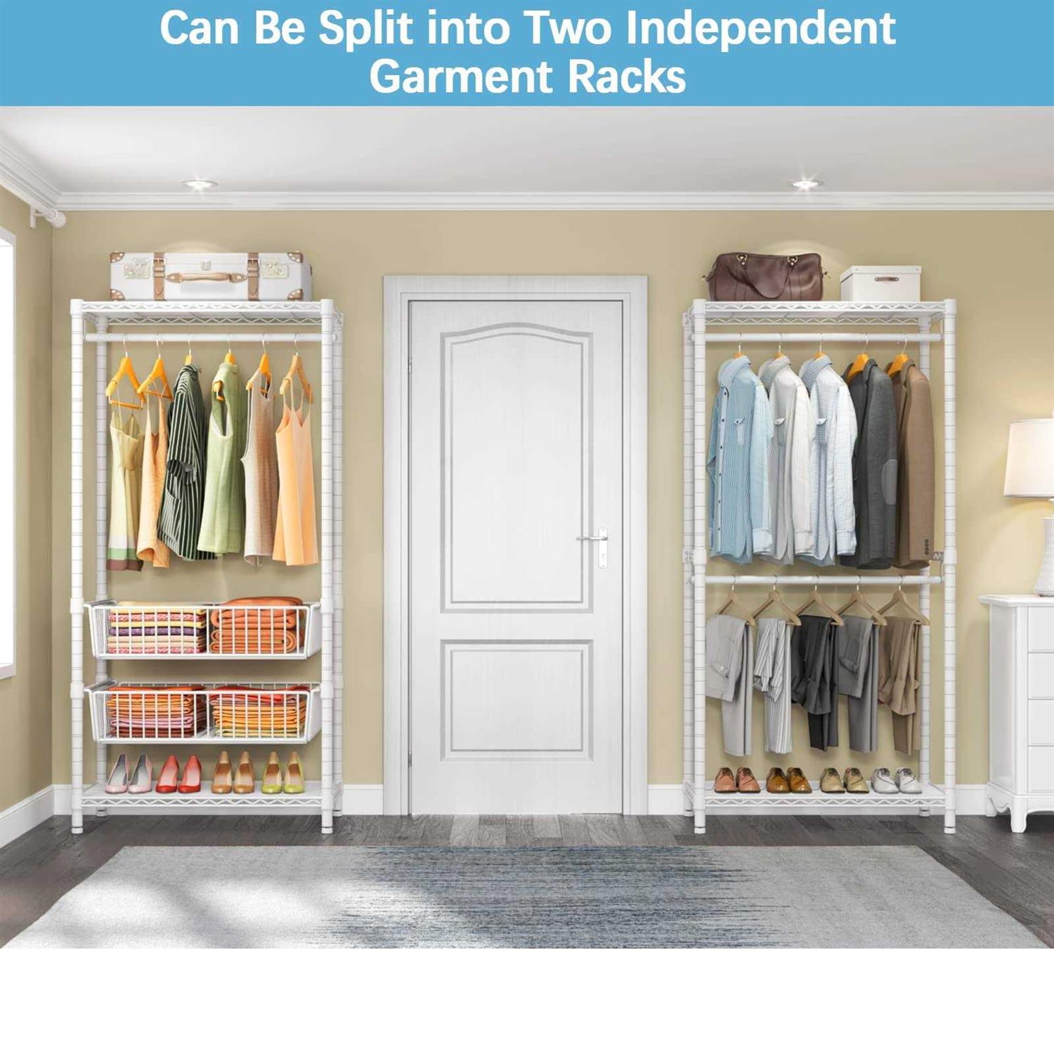 Our VIPEK Multifunction Wire Steel Closet Organizer is designed to maximize your storage space, by providing shoe storage, double hang storage, long hang storage, folded storage, so that every bit of closet space is functional and fits your needs. Color: white.