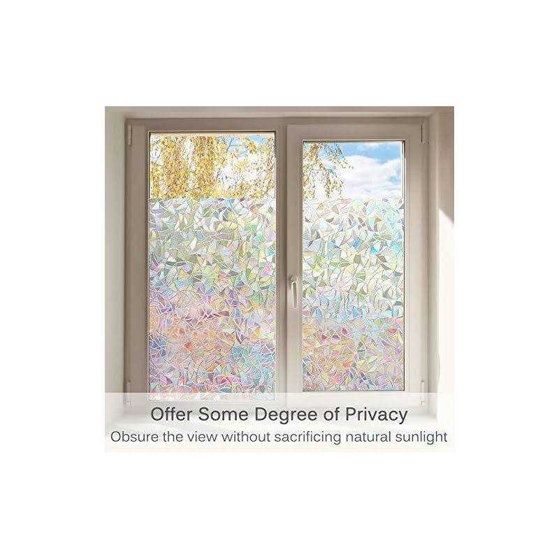 NO ADHESIVES WINDOW PRIVACY FILM: Glue Free Design Cuts down Chemical Release Drastically, Applies in Minutes and Firmly Sticks to Windows EASY REMOVAL: Leaving No Residue after Removal and the Film Can Even Be Used Again! UV PROTECTION AND ENERGY SAVING: Blocks up to 96% of UV Rays and Reduces Glare up to 79%, Slows Down Fading on Flooring, Furniture, and Cuts Energy Bill up to 30% by Rejecting up to 45-85% of Total Solar Energy RAINBOW EFFECT: When the Sun Shines Through, It Casts Lots of Rainbows, Creates the Appearance of Stained Glass and Adds an Attractive Design for an Updated Look PRIVACY PROTECTION: Provides Privacy and Allows the Lights in. Privacy Level : Semi-Private Window Films (Protects Your Privacy But Not Recommended For Bathroom Application) Volcanics static cling window privacy film is easy to apply and remove due to non adhesive feature. The force of static sticks the film to the glass, so there will be no residue after removal and the film is totally reusable. It’s ideal for rented properties or for temporary privacy requirements. Volcanics film offers year-round energy savings, the dual action window film helps keep heat out in summer and reflects warmth in winter. It’s like sunglasses for your home protecting the interior from harmful UV rays. The lifetime guaranteed window film is safe for your windows, and you can experience the comfort and see the saving. The film makes it harder for people outside to see inside. This decorative film also updates the look of a window and takes it from boring to stylish. It also serves safety purpose: Broken windows happen, whether from a ball or an act of nature. A window covered with film is less likely to send broken pieces flying in all directions. Note: 1. Package includes: 1 * Volcanics Window Film and 1 * Manual 2. The film itself has no color. The rainbow colors only show when the sunshine or any light shines through.