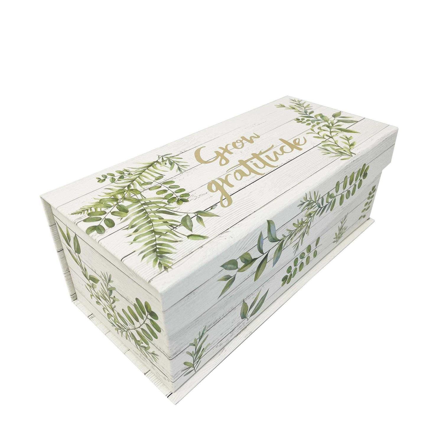 DECORATIVE DECOR Store items in plain sight with lidded storage boxes that add elegance to any room NESTING BOXES These attractive boxes fit inside one another so you can easily store them when not in use THREE SIZES Three convenient sizes to store fabric, clothes, ornaments, photos, and other memories TEST OF TIME Our lidded boxes are made from durable paperboard to withstand many seasons to come DESIGNED WITH CARE Decorated with an elegant print and inspirational messages that adorn the outside of each box, expressing love and gratitude wherever you keep them BLESSED Now you can keep your most precious possessions in this set of three attractive magnetic tab boxes. Show your unique style and taste when you display these decorative treasure chests with inspirational sayings – the perfect place to store your most beloved memories. CHERISHED KEEPSAKES Somehow things seem more special when they’re kept in a special place, and your most cherished possessions deserve a special home. Store precious memorabilia like photos, letters, and other beloved mementos, or you can keep your practical belongings like recipes, fabric swatches, arts & crafts materials, ribbons and yarn. STYLE AND PANACHE Don’t just fill these convenient storage boxes and throw them in the back of a closet. These elegant treasure chests are meant to be seen. You can leave them on display in a living room, bathroom, or bedroom – anywhere you want to impress your guests and give yourself a lift with a little style. DESIGNED WITH CARE These beautiful rectangular containers are designed with care and thoughtfulness that make them exceptional for any décor. Each is decorated with a floral print with cursive lettering. Inspirational messages adorn the outside of each box, expressing faith and gratitude wherever you keep them. An easy way to add elegance to any room. TEST OF TIME These lidded boxes are made of durable paperboard to withstand the test of time. Attractive rectangular containers for storage and organization come in three convenient sizes to store fabric, clothes, ornaments, photos, and other memories. Boxes nest inside one another so you can easily store them when not in use. A magnet holds the front tab of the hinged lid to the front of the box to secure it closed. DIMENSIONS Large – 11.75” x 5.25” x 4.5” Medium – 11” x 4.5” x 3.5” Small – 10.25” x 3.5” x 2.75”