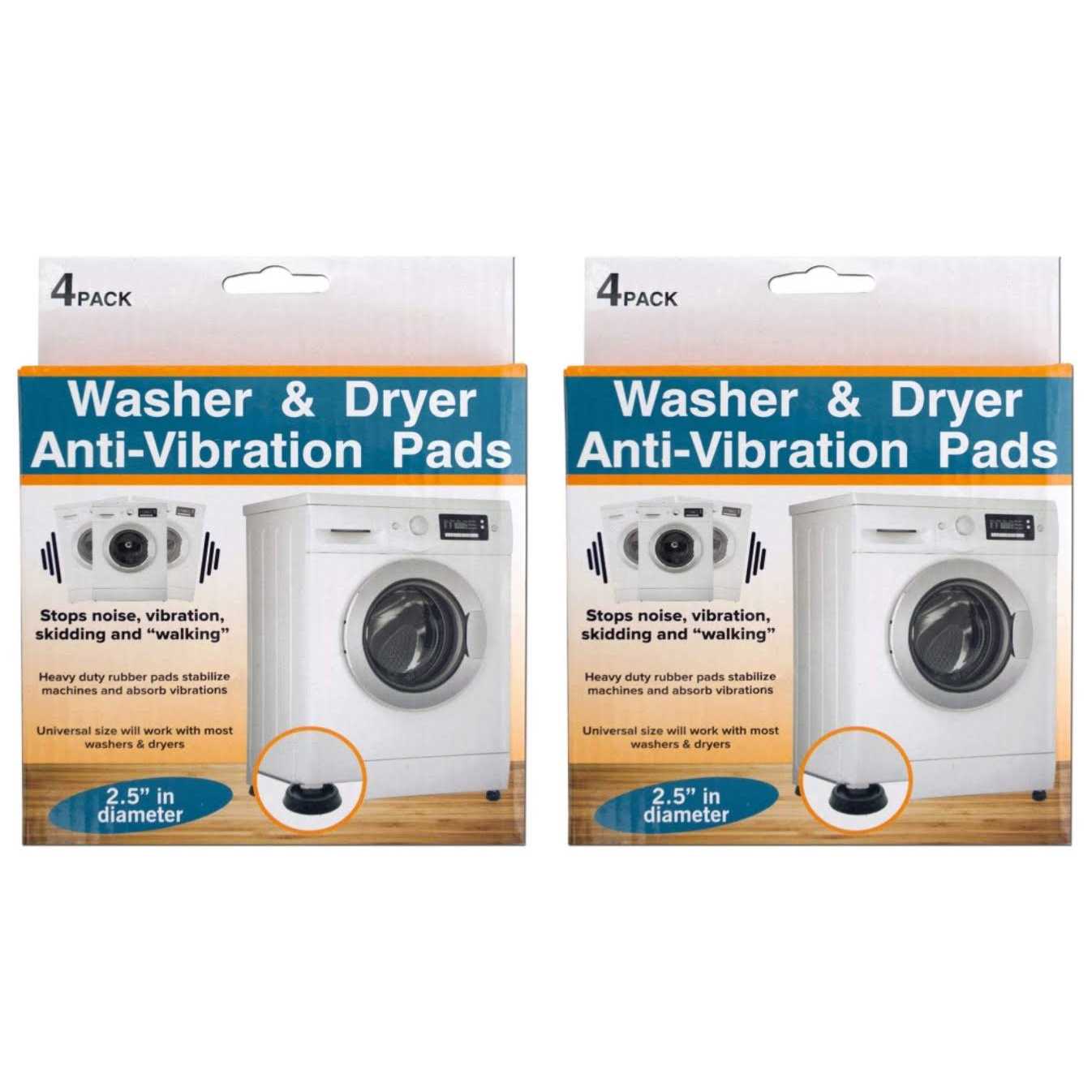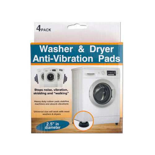 Heavy duty rubber pads that stabilize machines and absorb vibrations. Simply place the pads under each corner of your washer or dryer. Pads stop noise, vibration, skidding and “walking”. Includes four pads.