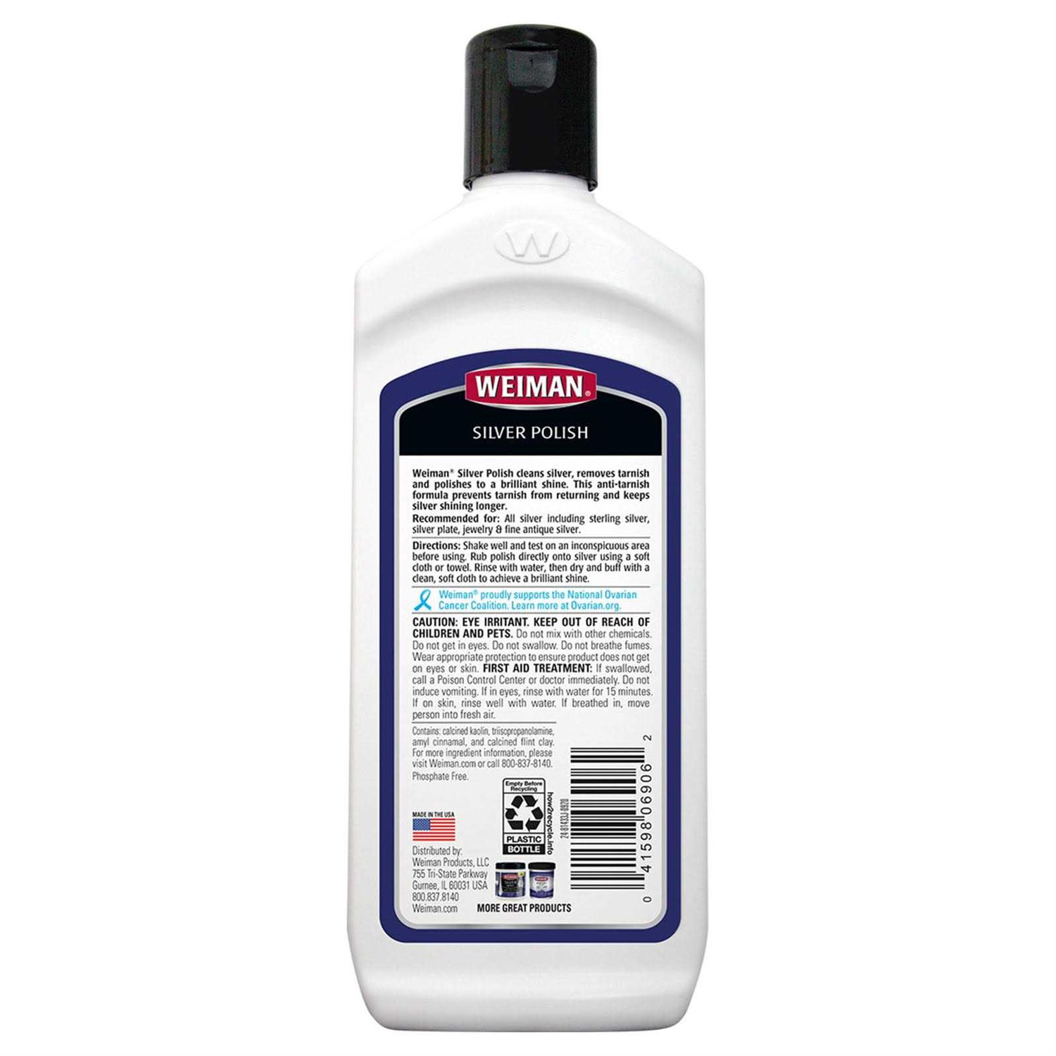 Give your silver the long-lasting shine and protection with Weiman Silver Polish & Cleaner. Made with only the finest ingredients & engineered with a mild, non-scratch formula that instantly removes tarnish and polishes silver & other metals. Anti-tarnish agents leave a protective tarnish coating that prevents & delays tarnish from retuning and keeps silver shining longer for years to come. Weiman Silver Polish is developed with a unique, ammonia-free liquid formula that allows safe use on all types of silver including sterling silver, silver plate, silver jewelry and fine antique silver. In addition to silver, Weiman Silver Polish & Cleaning Liquid gently revitalizes gold, platinum, titanium, brass, copper, aluminum & precious gemstones to leave an immense, mirror-like shine. Instantly revive dull, discolored metal to keep jewelry, heirlooms, & fine housewares shining significantly longer, year after year. You may use this floral scented product as often as you need to restore the brilliant shine to your silver and jewelry. Weiman Products is the perfect home, chef, pro, scratch resistant, cleansing, household, professional, and at work solution for all of your cleaning and buffing needs. The best specialty cleaning products you will buy online or in a store. When cleaning is your therapy, Weiman is your method, just wipe away and not a fingerprint in site! Weiman wants each of the surfaces in your home to look its best. From stainless steel to leather to granite, each of our products is formulated specifically for one surface and one surface only; allowing you to achieve the perfect results that your home deserves. Weiman leaves a polishing shine and acts as a protector where other cleaners do not compare