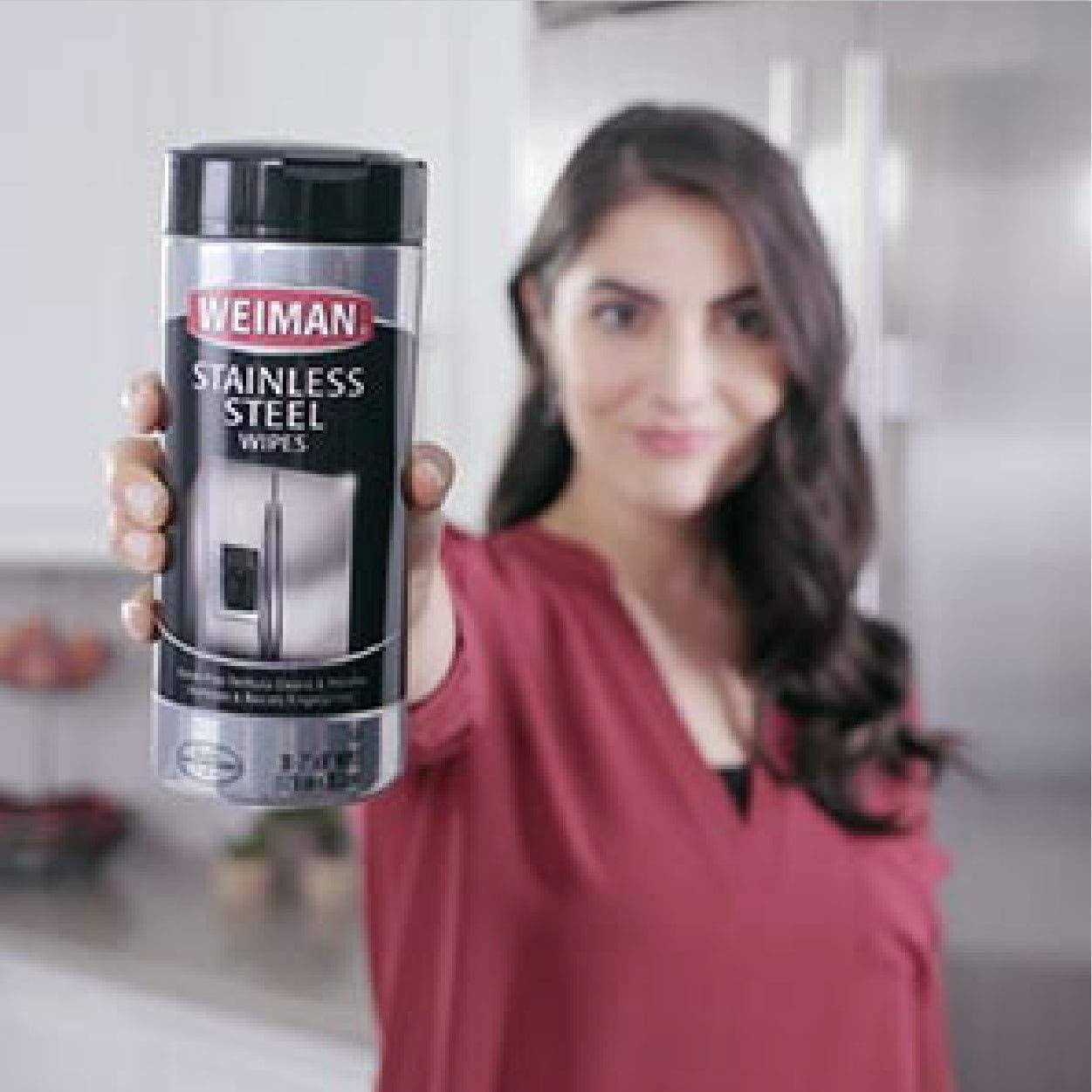 Give your appliances the showroom treatment with the convenient Weiman Stainless Steel Canister Wipes. A cleaning wipe designed with a polish that protects and resist fingerprints, watermarks & grease; while also repelling dust and dirt to keep your kitchen shining brighter & longer. Your stainless steel fridge, outdoor grill, dishwasher, washing machine, washer & dryer, microwave, cooktop, sink, faucet, and any metal or stainless-steel appliance surface will effortlessly convey a streak free, premium stain resistant and clean look. Weiman Stainless Steel Cleaner & Polishing Wipes help restaurants and commercial environments with the highest of expectations to look their very best (surfaces, refrigerator, and appliances). Weiman polishes, resists scratching, and resists staining with just a simple wipe & buff, then you’re done! Restore the brilliant look of your kitchen with our line of Weiman specialty cleaning products that compliment your wood floors, cooktops, granite surfaces, silverware and more! Weiman Products is the perfect home, chef, pro, scratch resistant, cleansing, household, professional, and at work solution for all of your stainless steel cleaning and buffing needs. The best specialty cleaning products you will buy online or in a store. When cleaning is your therapy, Weiman is your method, just wipe away & not a fingerprint in site! Weiman wants each of the surfaces in your home to look its absolute best. From stainless steel to leather to granite, each of our products is formulated specifically for one surface and one surface only; allowing you to achieve the perfect results that your home deserves. Weiman leaves a polishing shine and acts as a protector where other cleaners do not compare.