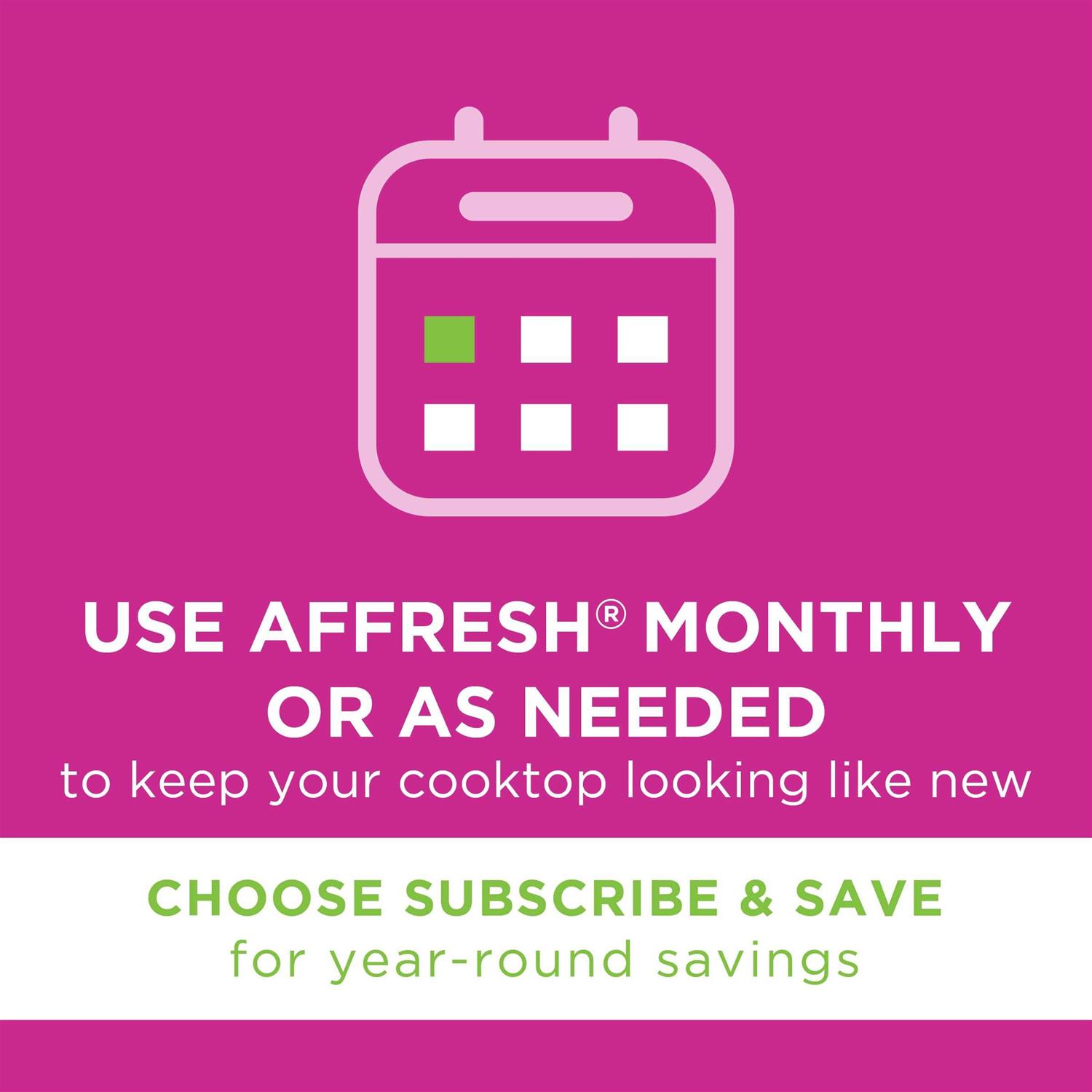 Affresh Cooktop Cleaner removes cuts through the toughest baked-on residue. This non-abrasive cleaner and pads are proven to remove even the toughest baked-on residue, even grease heated to over 750 Degrees Fahrenheit.