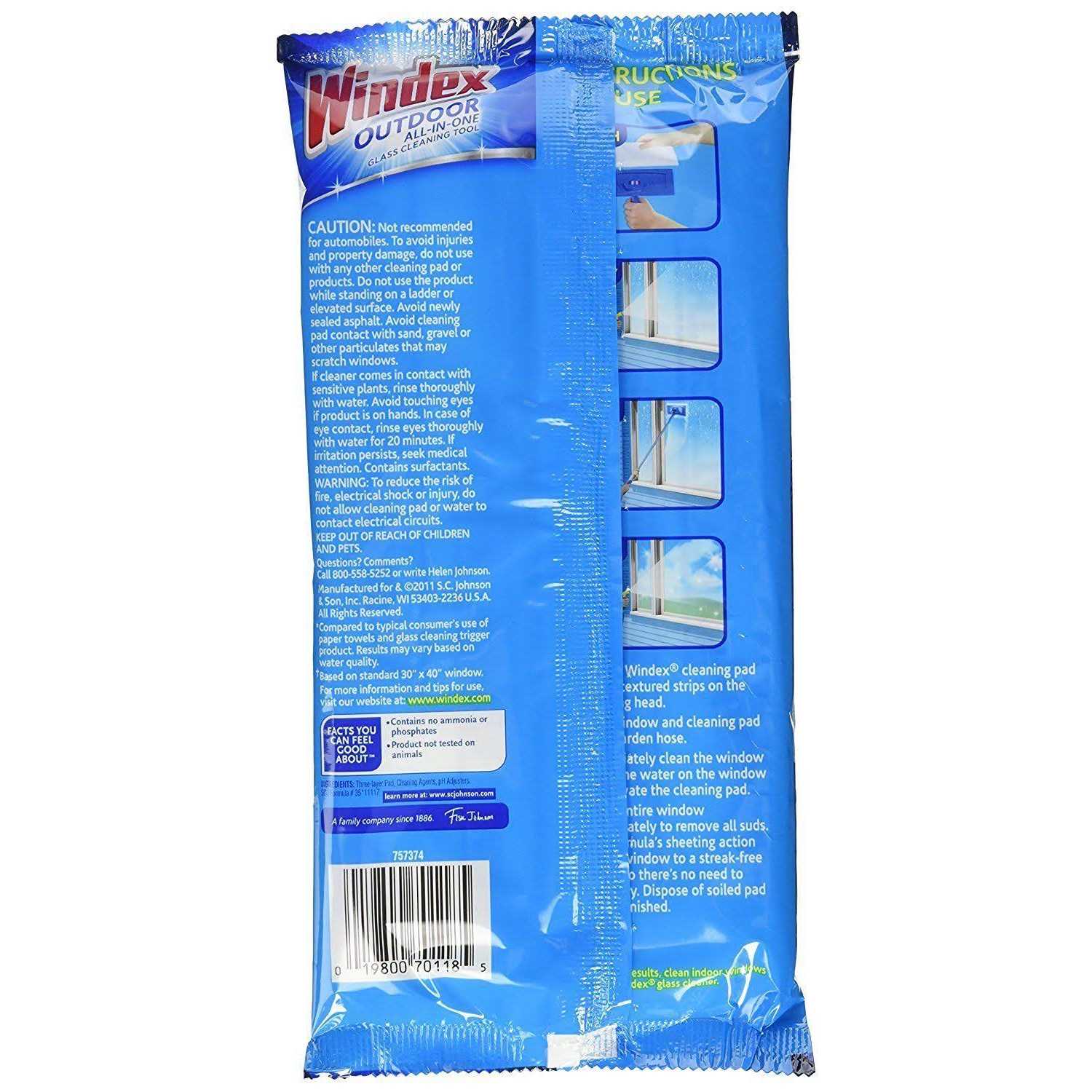 Streak-Free Shine! Streak-Free Shine in Half the Time! * The Windex Outdoor All-in-One Glass Cleaning Tool provides a faster, easier way to clean Outdoor windows. Simply spray, wipe, and rinse. The water-activated cleaning pad contains Windex cleaner. Say goodbye to hand-drying with the special Windex Sheeting Action Formula that prevents streaks and spotting Clean up to 2 windowsÊ with a single pad! Reach up to 11 ft. so you can tackle tough Outdoor grime without the hassle of using a ladder.