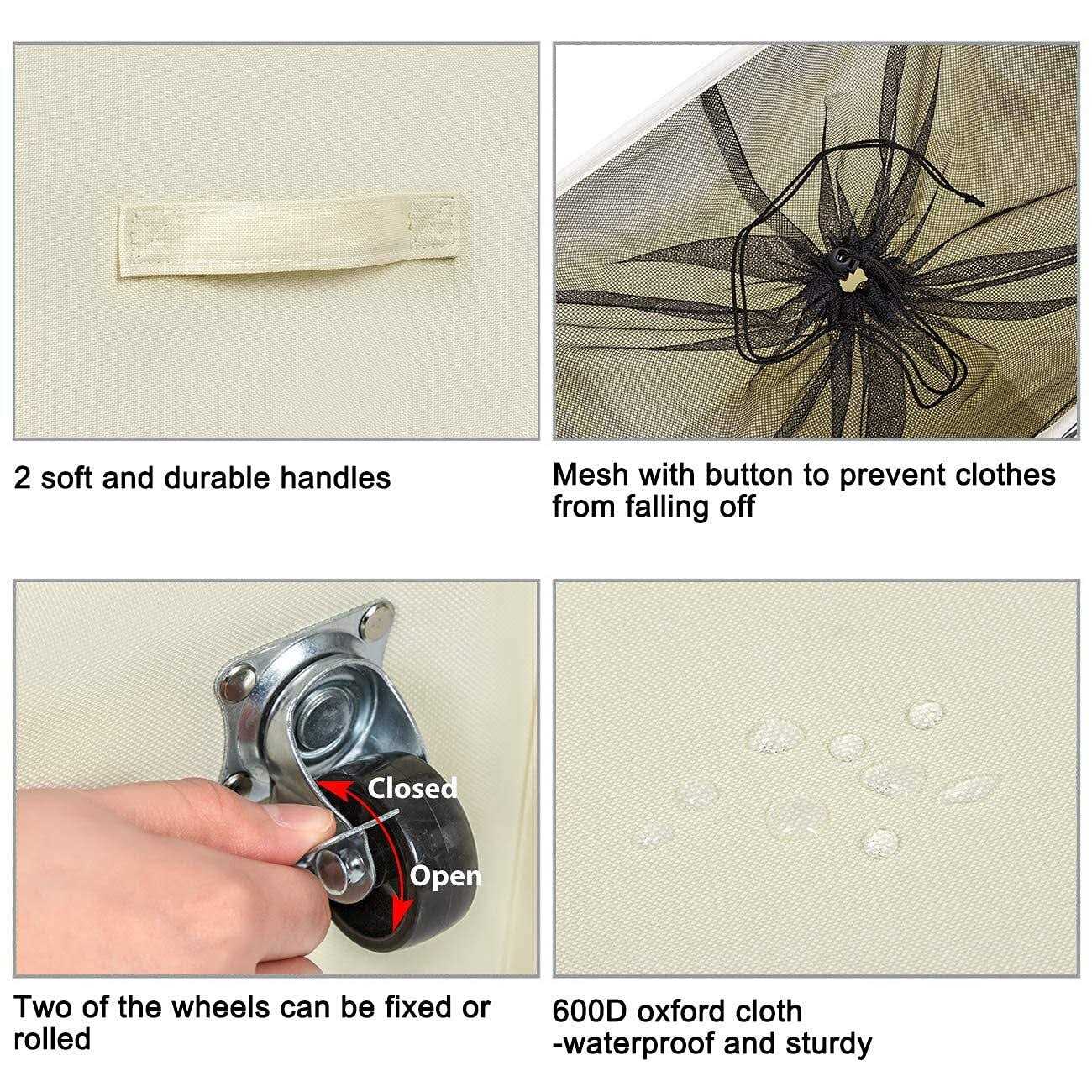 WOWLIVE Large Rolling Laundry Hamper Basket Wheels Durable Dirty Clothes Bag Collapsible