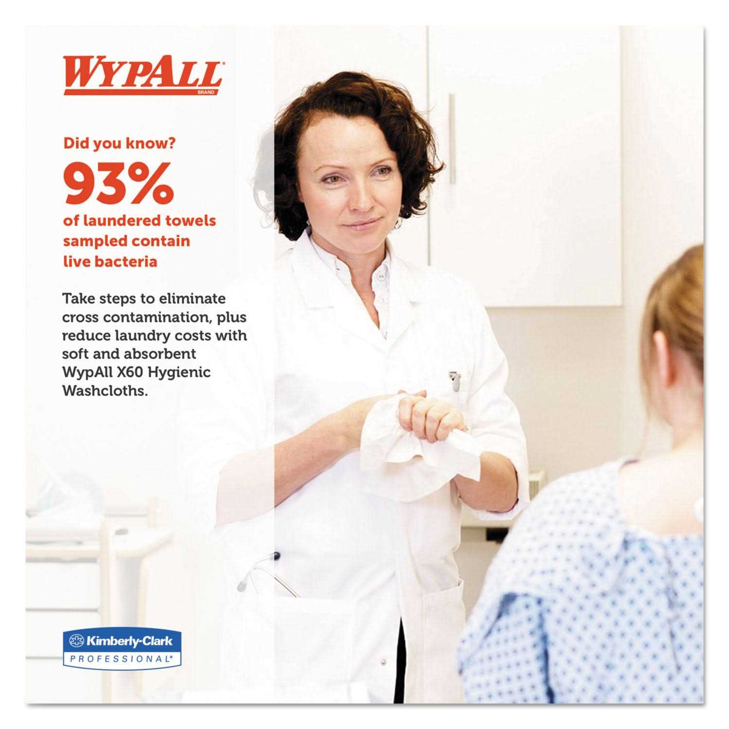 Wypall X60 Washcloths, 12 1/2 x 10, White, 70/Pack, 8 Packs/Carton