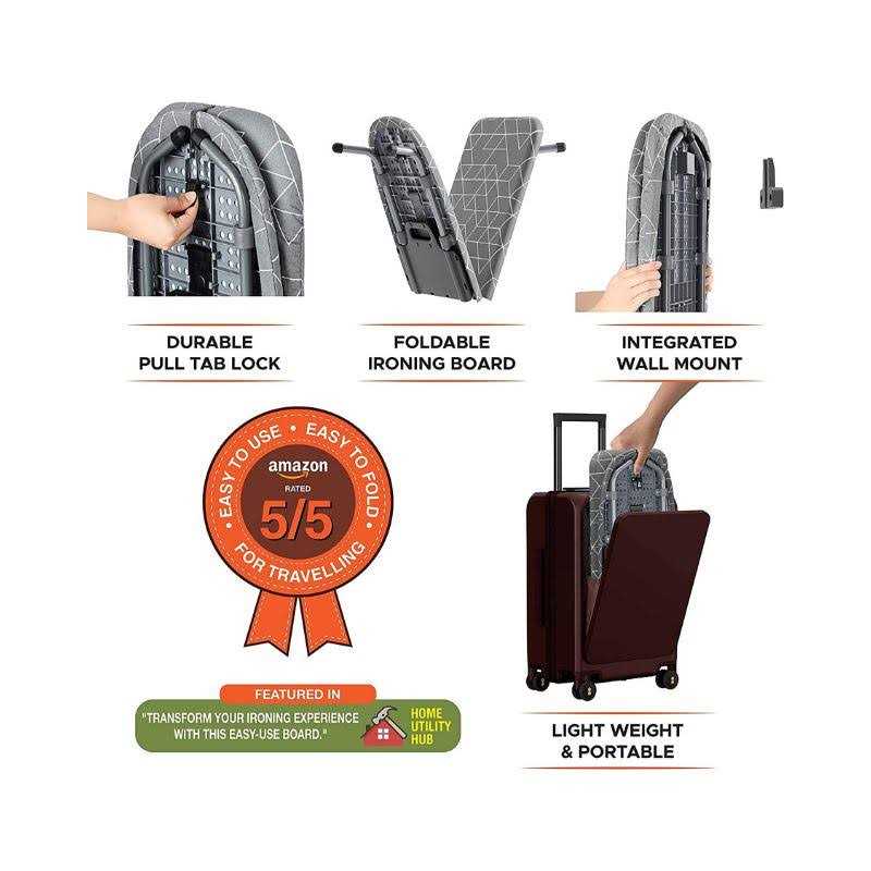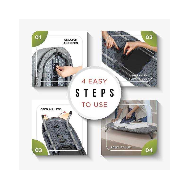 • Strong lock in mechanism for superb stability during use. Almost zero bending crease with thick cover and pad for best output while ironing.