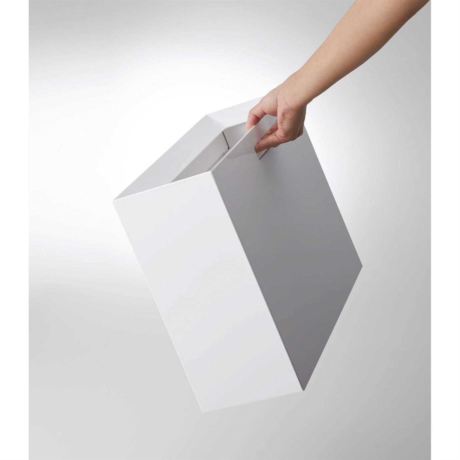 Make haste for this wastebasket. This waste bin offers much more than meets the eye. The slanted opening hides unsightly trash within. An interlocking design pins your trash bag in place while simultaneously hiding the unattractive bin liner. Finally, a handle at the back makes emptying the bin an easy chore. Its just that clever! This modern wastebasket is perfectly designed for limited space. A simple square footprint belies the trash can’s hidden features that keeps the trash equally hidden.