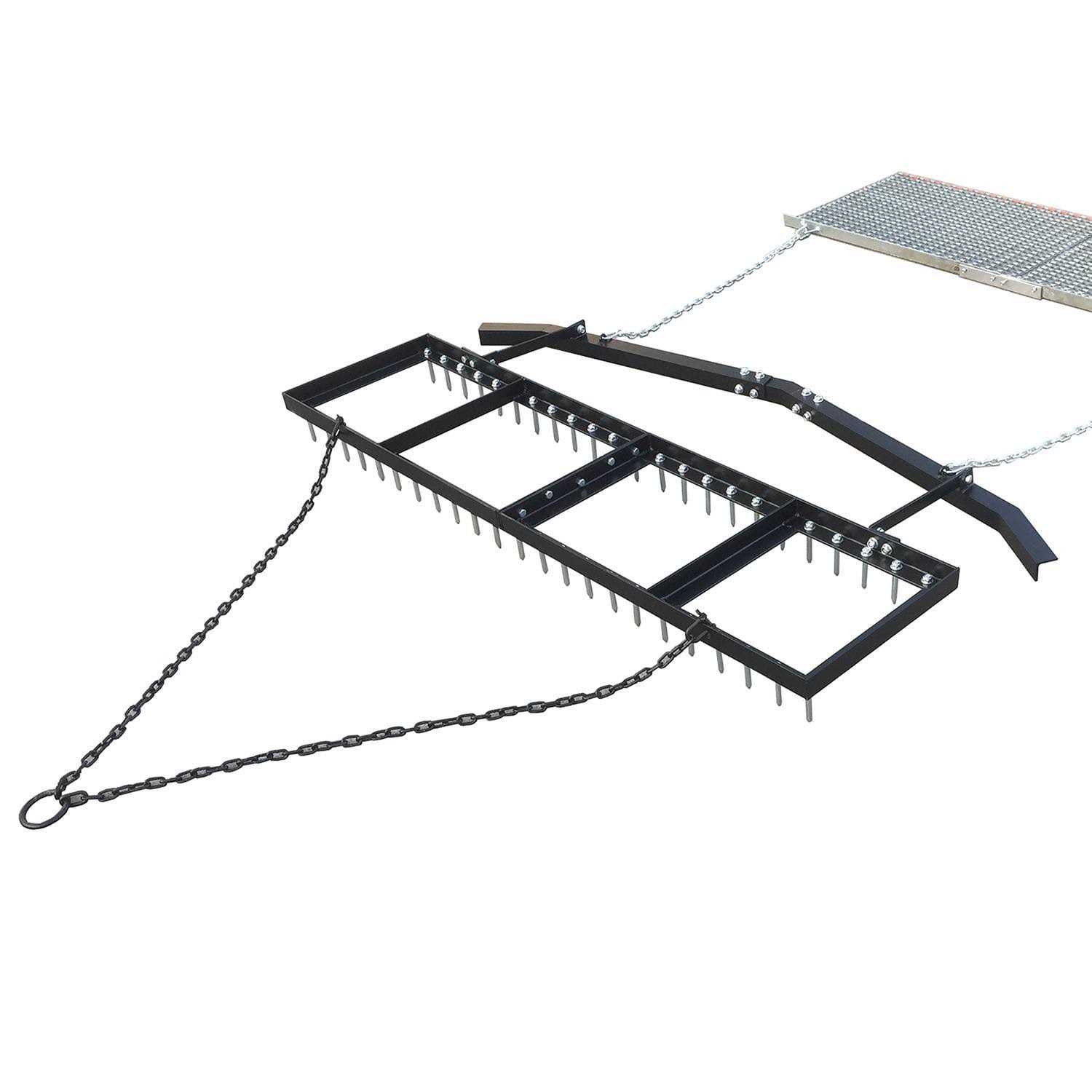 Yard Tuffs YTF-618SDLBDM 6 Spike Drag with Leveling Bar and Drag Mat is a multipurpose tool perfect for a wide variety of jobs. It measures 72 wide x 18 long for a large working area and is constructed of a heavy-duty steel design with 46 bolts for a durable drag. Designed for multipurpose field arena baseball field and driveway maintenance this Yard Tuff product can handle a wide variety of tasks. It even holds extra weight for an enhanced performance. Yard Tuffs product is perfect for leveling or grading fine gravel or soil and works with ATVs UTVs and utility tractors.