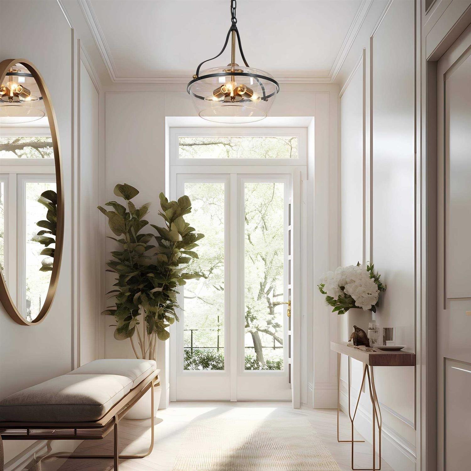 Brighten up your home decor with the charming chandelier. The bowl-shaped clear glass shades provide a bright and warm light while the black and plating brass finish adds a modern flair to your space. This stunning pendant light creates a warm and cozy atmosphere, making it perfect for your dining room, kitchen island, entryway and living room.